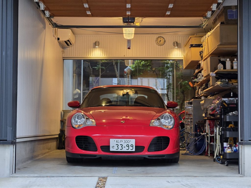 Porsche販売店で、シリコンオイルかワックスでテカテカにされていた996