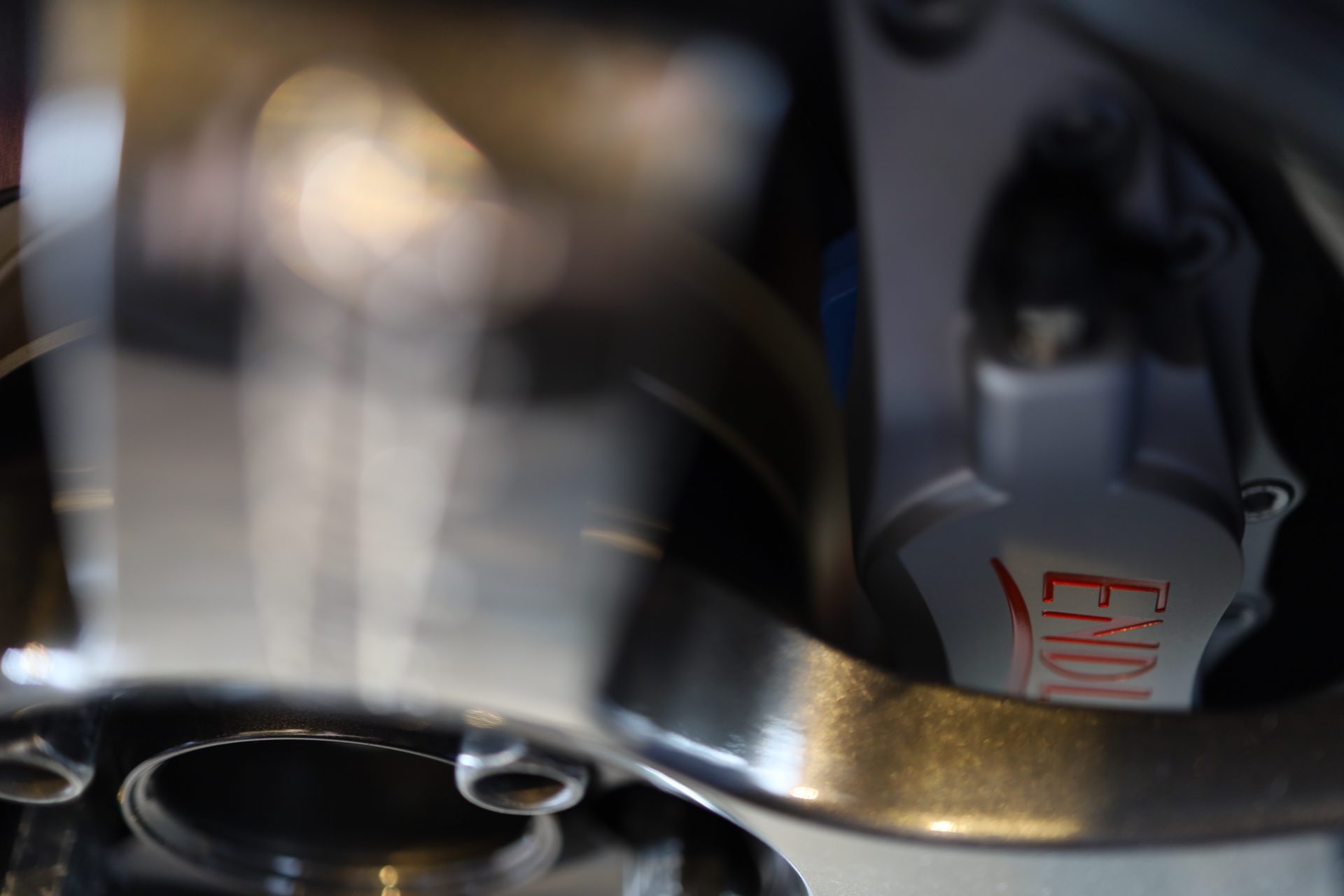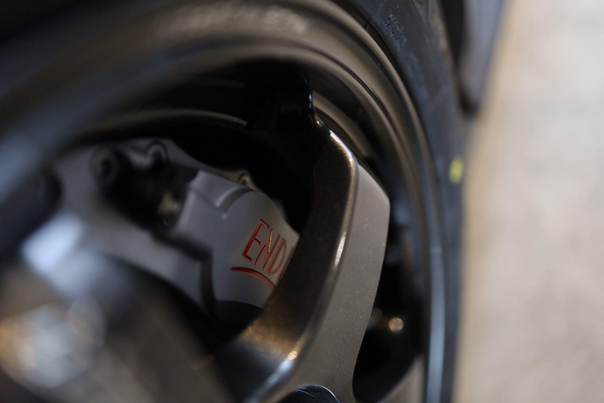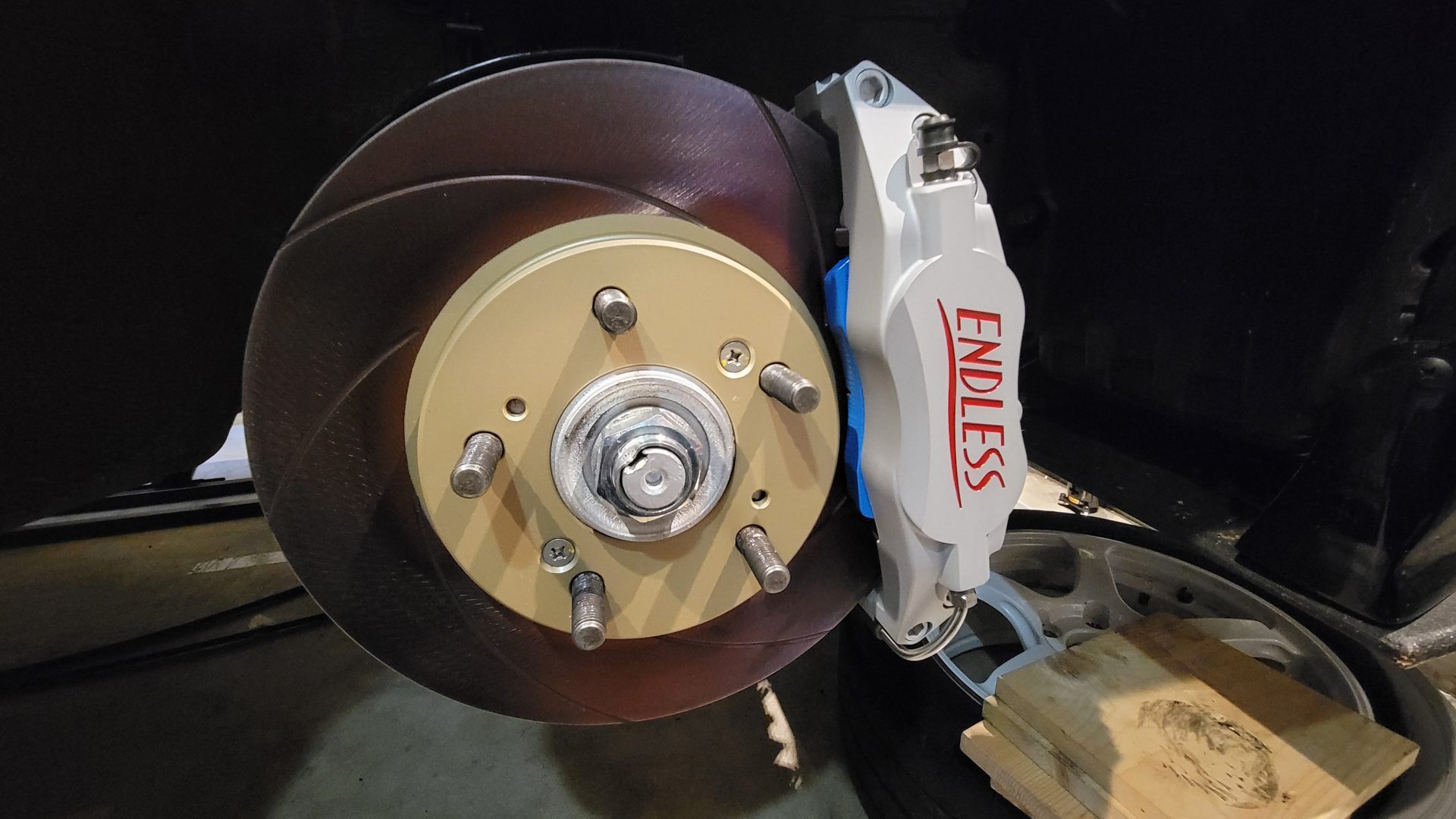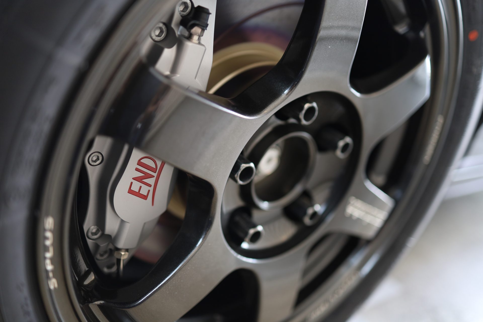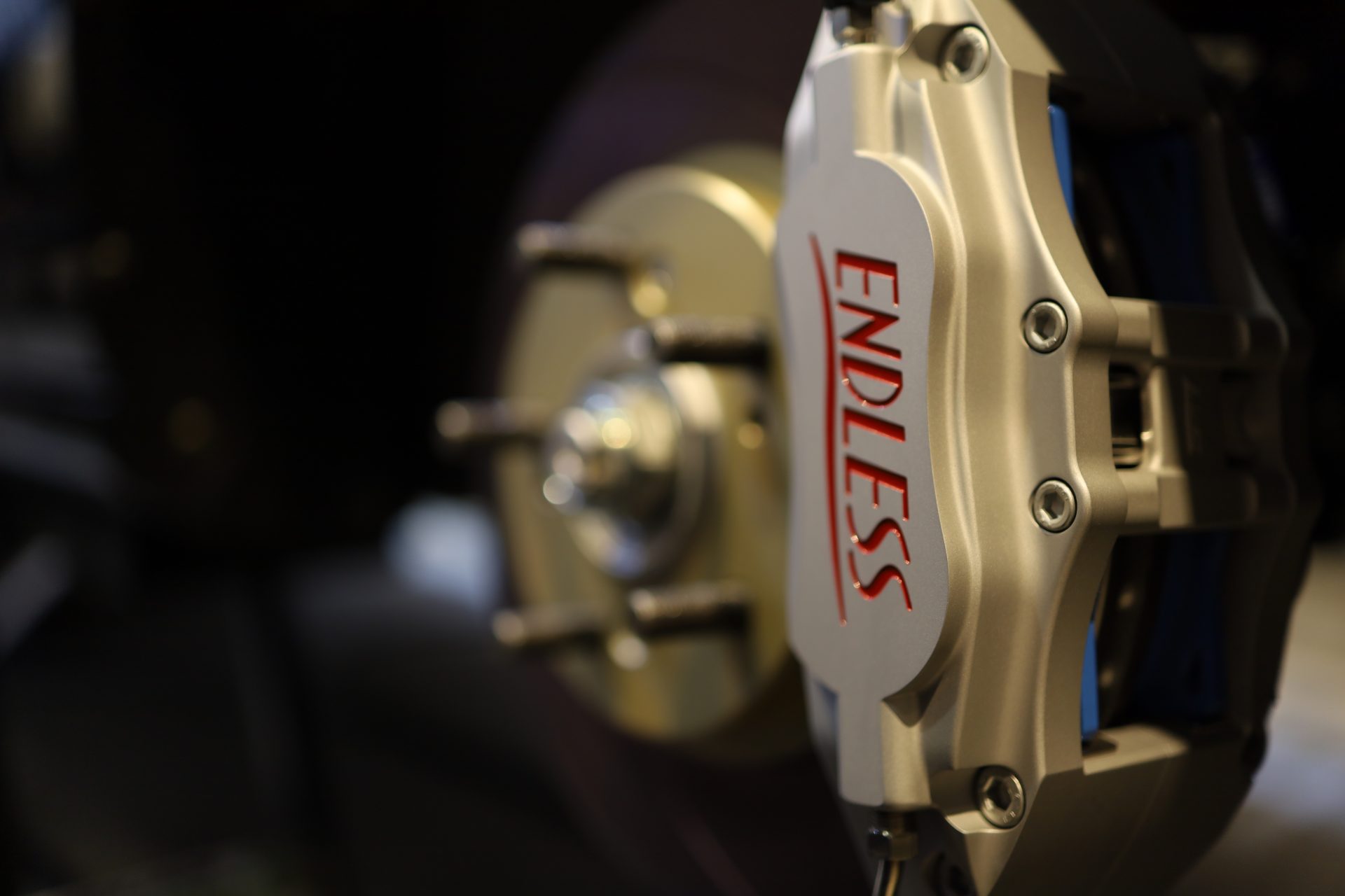 Endless 4pot – for this vehicle weight, capacity is more than sufficient. Silver x red engraving to match Type R. Wanted old logo to suit classic car but can’t order anymore.