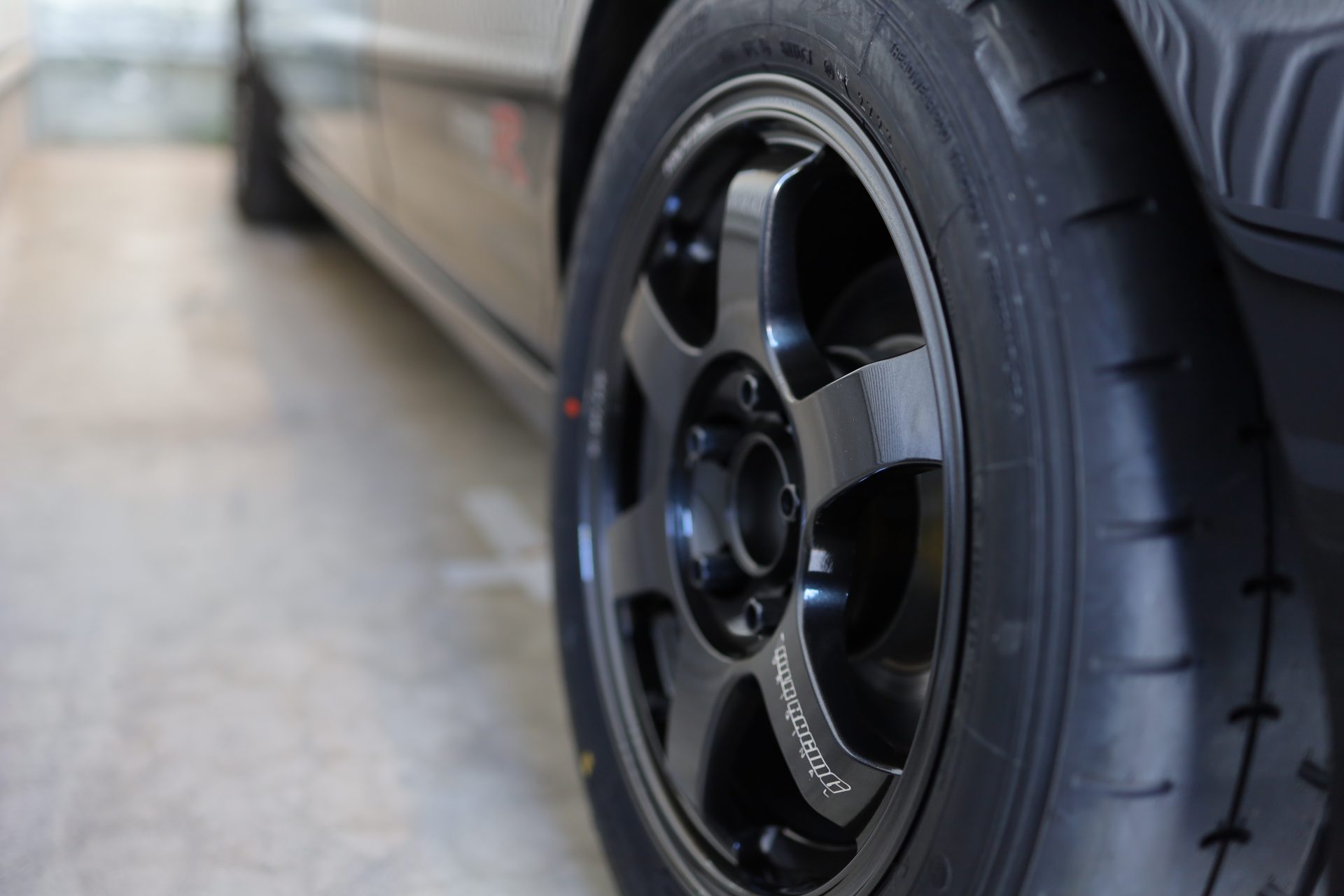 Wheels are TE37 SAGA Plus 15 inch. Caliper clearance machining is excellent. Personally, smaller wheels better. Lighter, cheaper tires, thick sidewalls look cool and better ride comfort.
